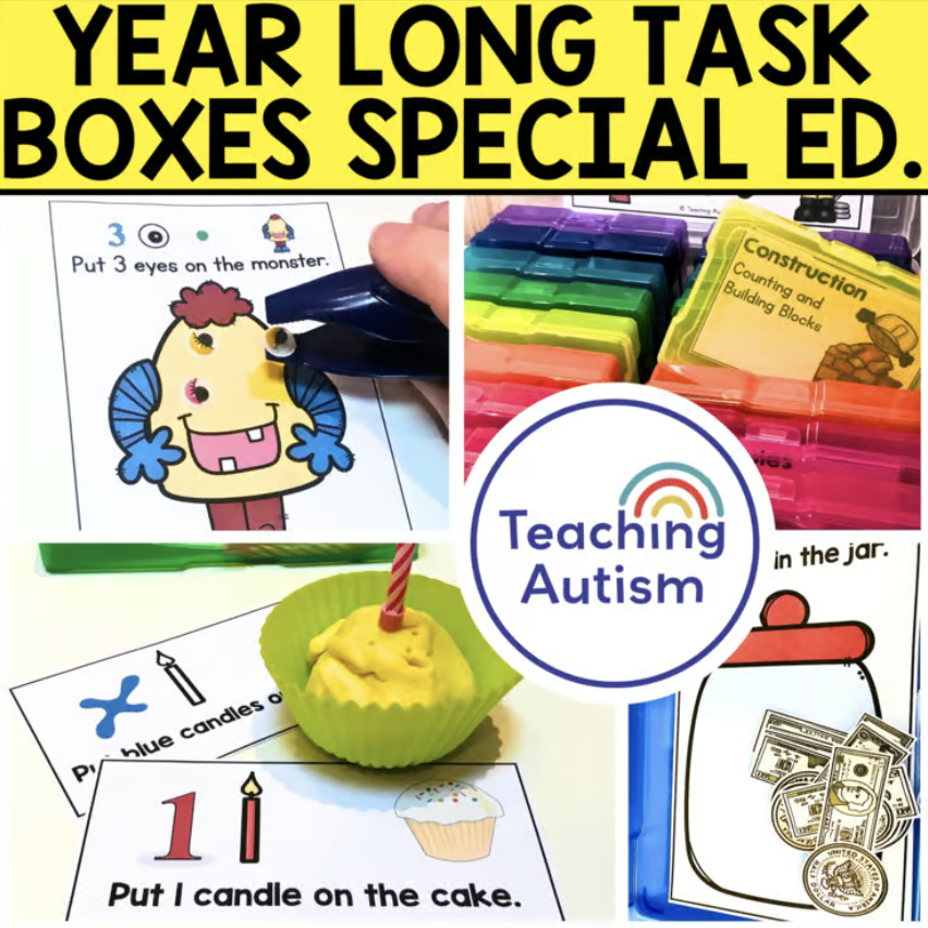 My biggest and most comprehensive task box bundle – covering math, literacy, matching, sorting, life skills, fine motor, functional skills, and more. This bundle is already discounted, and the extra 50% off makes the price unreal.