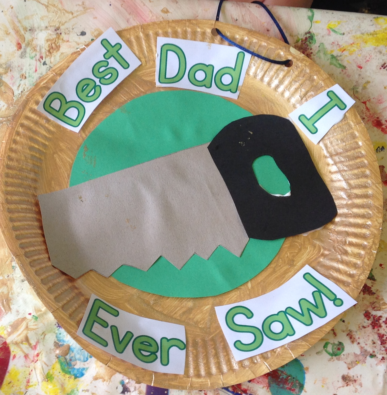 - Print out the words: Best Dad I Ever Saw! and cut them out individually – stick these onto the paper plate once dry.