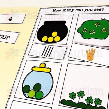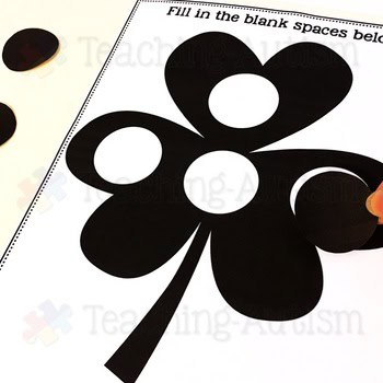 There are 5 different file folders activities included in this pack. Each one contains an errorless St. Patrick’s Day theme activity.