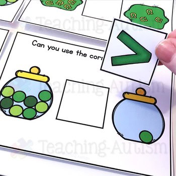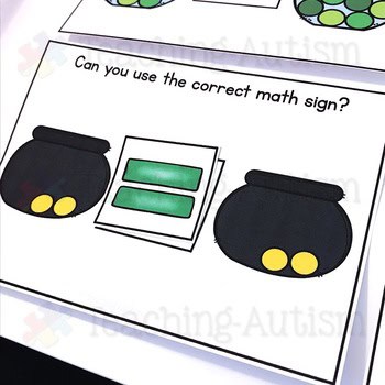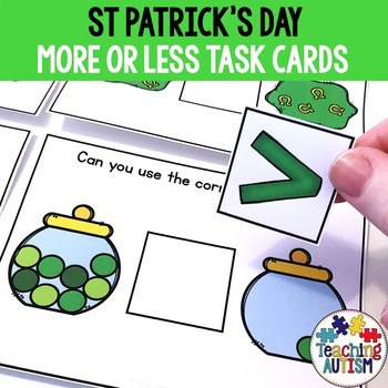 These St Patrick’s Day activities are the perfect way for your students to work on their more or less math skills. These task cards are an engaging and hands-on addition to your math centers and will give your students plenty of opportunity to work on their more than, less than and equal to math skills.