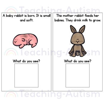 On each page of these adapted books, your students will be faced with an image of a stage of the life cycle of a rabbit. Students have to find the matching symbol for that tools to identify what stage of the rabbit life cycle it is. This is a great opportunity for students to work on their language skills too.
