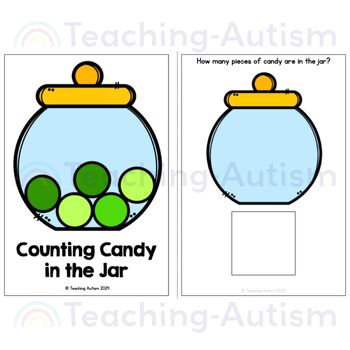 Students look at how many pieces of candy are in the jar. Then, find the matching number symbol from the base board to place here. I.e. ‘1/one’ ’10/ten’ - Level 2 Counting (0-10)