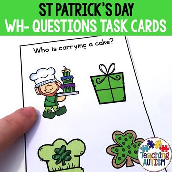 Wh Questions for Speech Therapy Task Cards, St Patrick’s Day